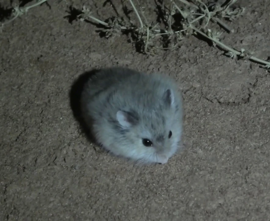 Džungarský křečík na videu vybělaný do zimní srsti v přírodě Kazachstánu kde je v zimě teplota kolem - 10 °C: